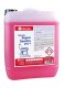 Prostředek na důkladné mytí a čištění sanitárního zařízení a místností. Účinně odstraňuje rez, vodní kámen, vápenné, cementové a močové usazeniny a zbytky mýdla. Zejména se doporučuje pro čištění klozetových mís, výlevek, pisoárů a umývadel. Dále je vhodný na čištění chromovaných a nerezových předmětů, jako jsou koupelnové baterie, dřezy, armatura. Odstraňuje nepříjemný močový zápach. Ředění vodou v poměru 1 : 10 až 1 : 40 ( 250-1000ml koncentrátu na 10 l vody). NEPOUŽÍVAT MA SMALTOVANÉ, SKLENĚNÉ, PLASTOVÉ A GUMOVÉ POVRCHY!